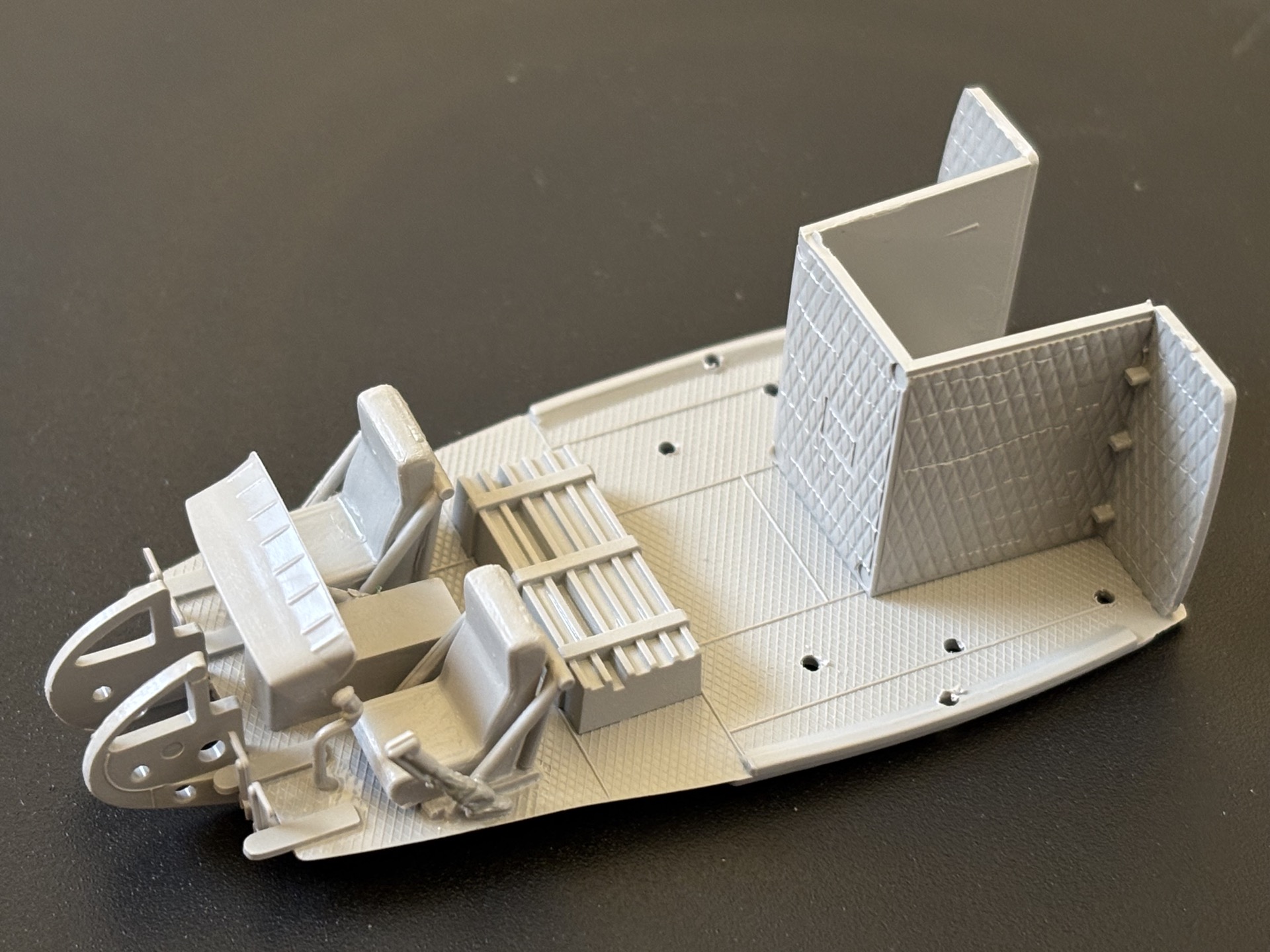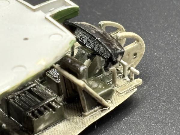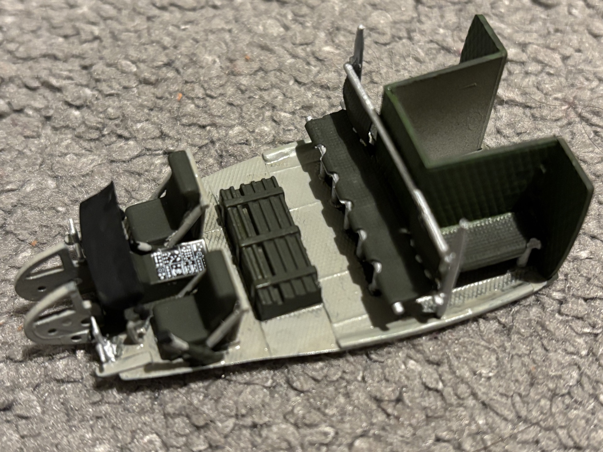 Dziś skleiłem tylko skrzynię kabiny. Muszę sklejać w etapach i malować na bieżąco. Ładnie się skleiło, jestem zadowolony. Pracowałem kilka godzin i postanowiłem pomalować podkładem. Przy okazji sprawdzę czy kilka miesięcy wcześniej wyczyściłem dokładnie aerograf