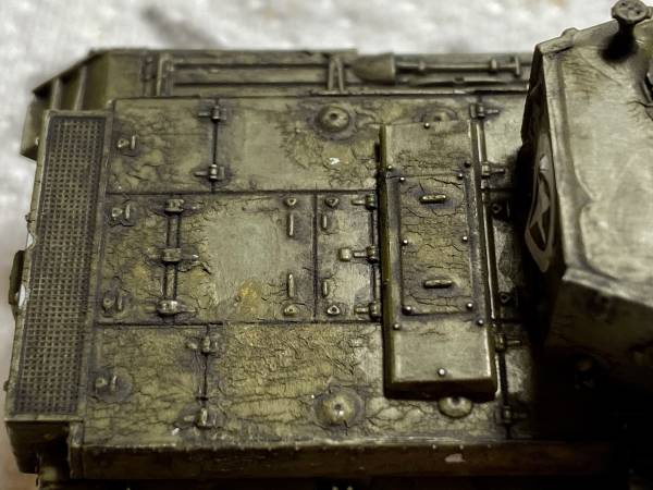 Probowałem poprawiać “washa” jeszcze raz, ale “wash” zaczął marszczyć farbę, wiec już wiem, że powinno robić się to tylko raz i dawać mało “washa”, lub na bieżąco zbierać patyczkiem do czyszczeniu uszu, szczególnie jak to jest mała skala.