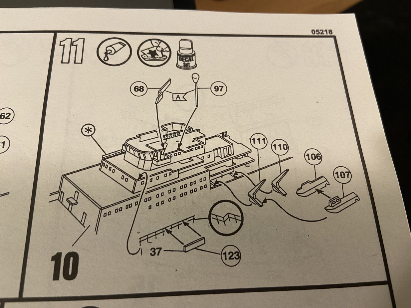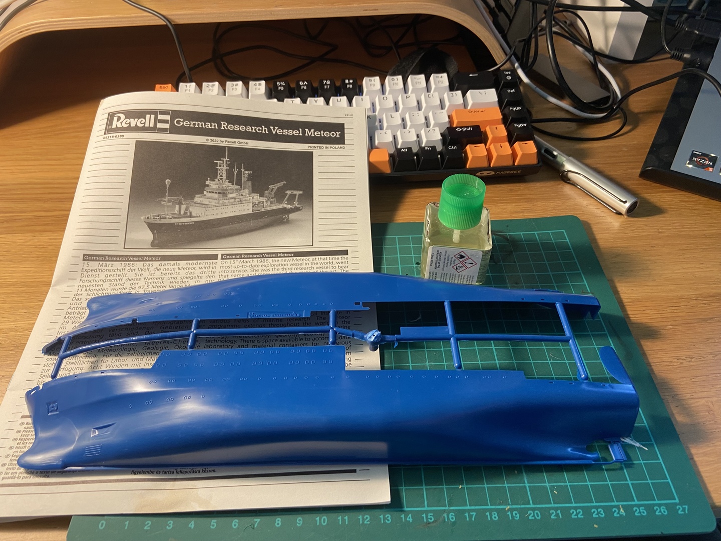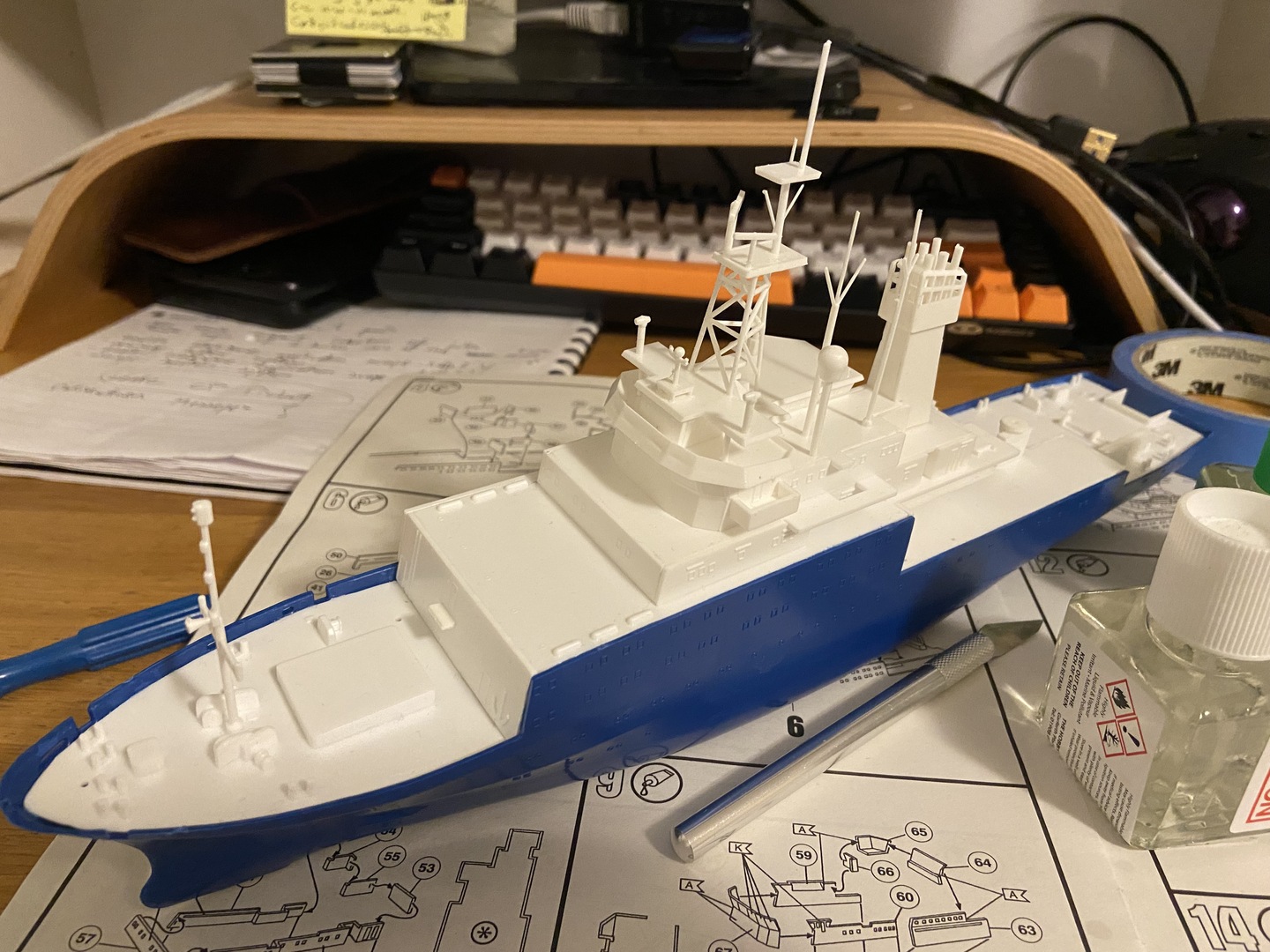 Po złożeniu i zamknięciu kadłuba, zacząłem składać nadbudówkę. Pierwszy raz składam Revella i na początku miałem problemy ze zrozumieniem instrukcji, ale po kilku chwilach ogarnąłem temat :) Zauważyłem, że ten plastik nie klei się jak inne moje poprzednie modele. Klej mam “SuperThin” Tamiya więc to nie wina kleju. Skleiłem dwa pokłady i postanowiłem zakończyć dzień.