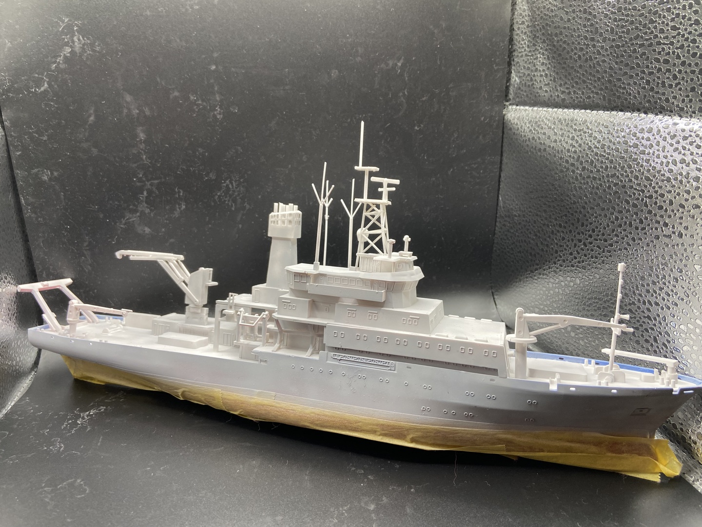 - Znaleźć taśmę maskującą wodnice i pomalować cały kadłub na niebiesko